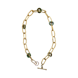Green Mother of Pearl circle necklace with 22k GP oval links