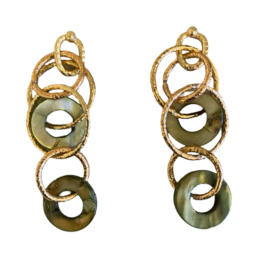 Large Green Mother of Pearl circle earrings with 22k GP circles